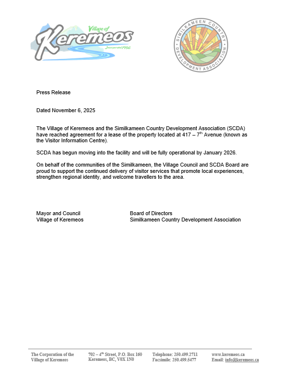 The next Council meeting will take place on Monday, December 1, 2025, at 4:30pm, in Council Chambers, 702-4th Street, Keremeos.